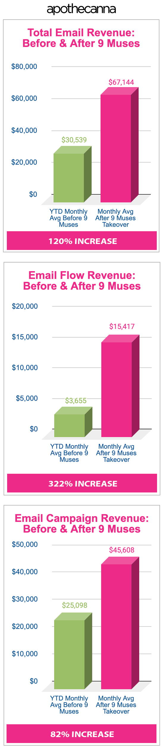 Apothecanna was a strong D2C brand, but had recently had major budget cuts to their digital marketing budget so could not rely on advertising to drive growth. The brand needed their email marketing to drive growth, and also needed a push for short-term revenue. They turned to 9 Muses Marketing for help.